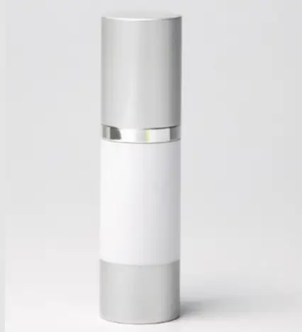 Envase Airless 50 ml Blanco con Base y Tapa Plata Mate
