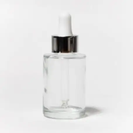 Este elegante gotero de 30 ml con tapa blanca y cuello en acabado metálico plata es perfecto para productos que buscan transmitir pureza y sofisticación. Su frasco de vidrio natural cilíndrico permite una visualización clara del contenido, mientras el cuentagotas ofrece una aplicación precisa y controlada.